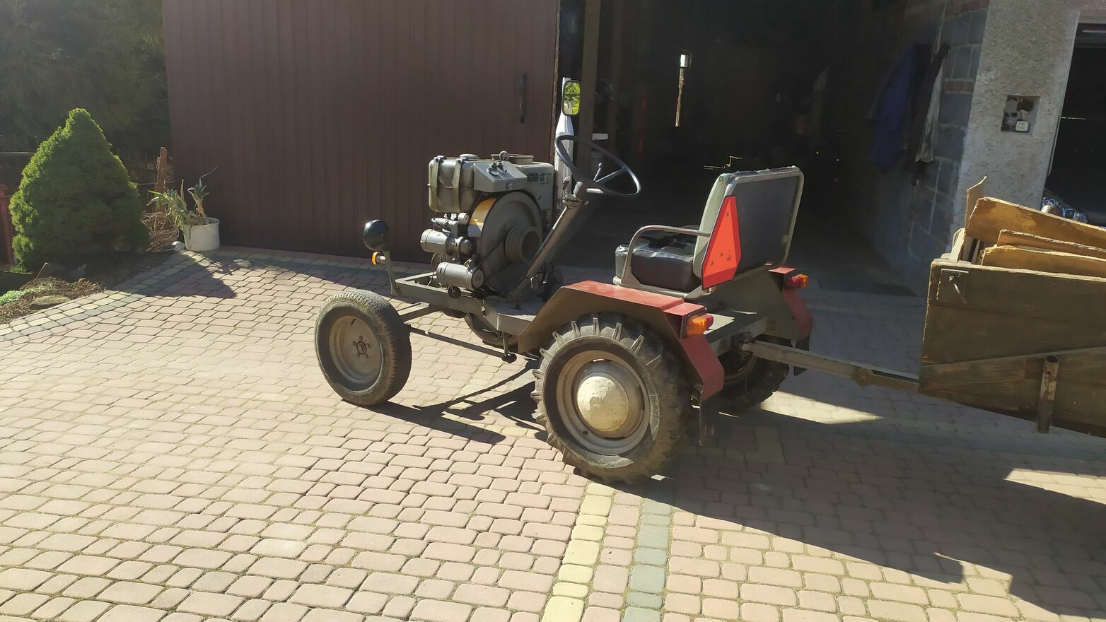 Sprzedam widoczny na zdjęciach ciągnik typu sam wykonany na podzespołach, skrzynia Lublin, most Żuk, silnik Andoria S15, koła jodełka 16 cali przystawka do wyjścia na wałek, światła, pali na rozrusznik, siedzenie dwu osobowe. Papaj wykonany starannie zgodnie że sztuką budowy takich pojazdów wszystko działa jak należy. Sprzedaję w komplecie z wozem jednoosiowym widocznym na fotkachSzajna